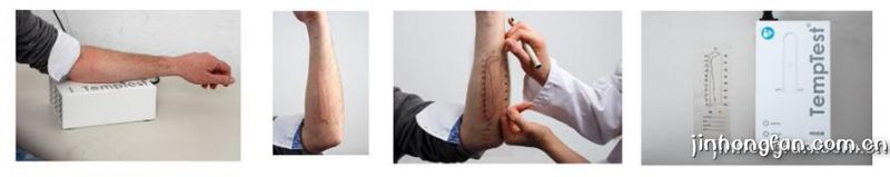 德國CK公司生產(chǎn)的TempTest是一臺測試病人是否存在寒冷性和熱性蕁麻疹的儀器,并能夠確定發(fā)生寒冷性或熱性接觸型蕁麻疹癥狀的臨界溫度。二者均屬于物理性蕁麻疹,當(dāng)皮膚接觸溫度高于或低于皮膚本身溫度時,瘙癢、燒灼感風(fēng)團(tuán)、紅斑等癥狀會發(fā)生。其中,寒冷性蕁麻疹是更常見的類型。